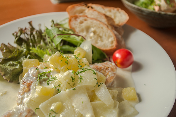 カマンベールチーズ鉄板ステーキ野菜とバゲット